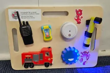 Bu Tîm Addysg Diogelwch Cymunedol GTACGC mewn partneriaeth â Chanolfan Arloesi Cerebra i greu byrddau synhwyraidd diogelwch tân i'w defnyddio pan fydd y Tîm Addysg yn ymweld ag ysgolion AAA. Cyfrannodd y tîm syniadau, profi prototeipiau, a rhoi adborth gwerthfawr drwy gydol y prosiect.