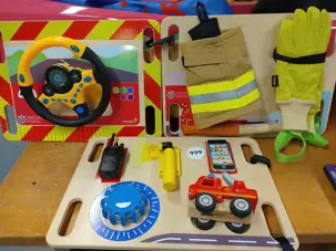 The education boards make fire safety accessible to all children, featuring firefighter uniform fabric, zippers and velcro for sensory play, plus torches, flashing lights, toy engines and a steering wheel with sirens.