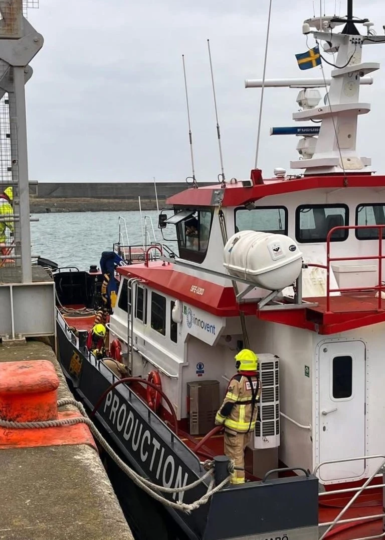 Crews were set up and ready at the harbour to tackle any remaining fire or reignition. Once the vessel was at the harbour, crews carried out a thorough inspection of the vessel using two breathing apparatus sets, two hose reel jets, one 45mm jet, one thermal imaging camera and one gas monitor.