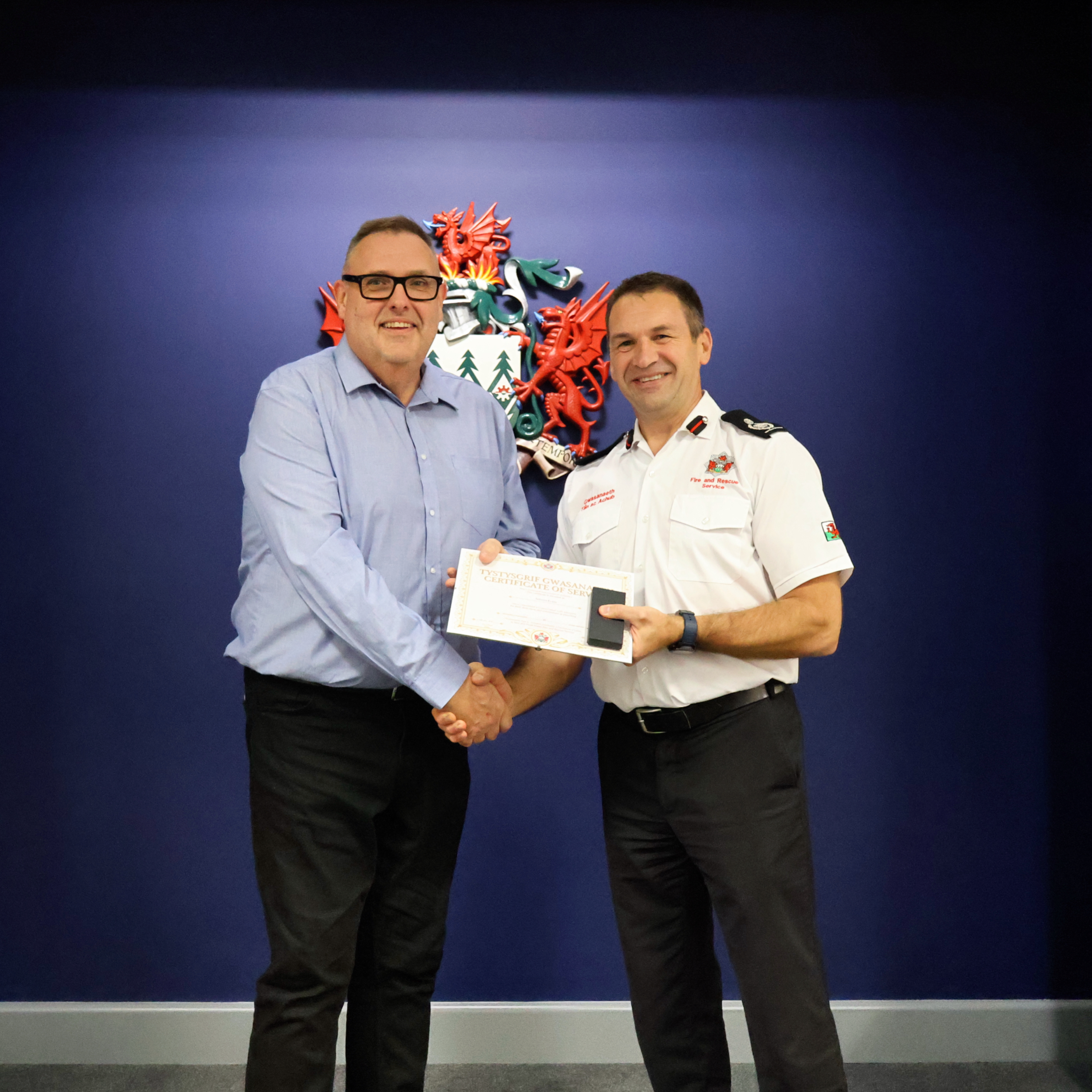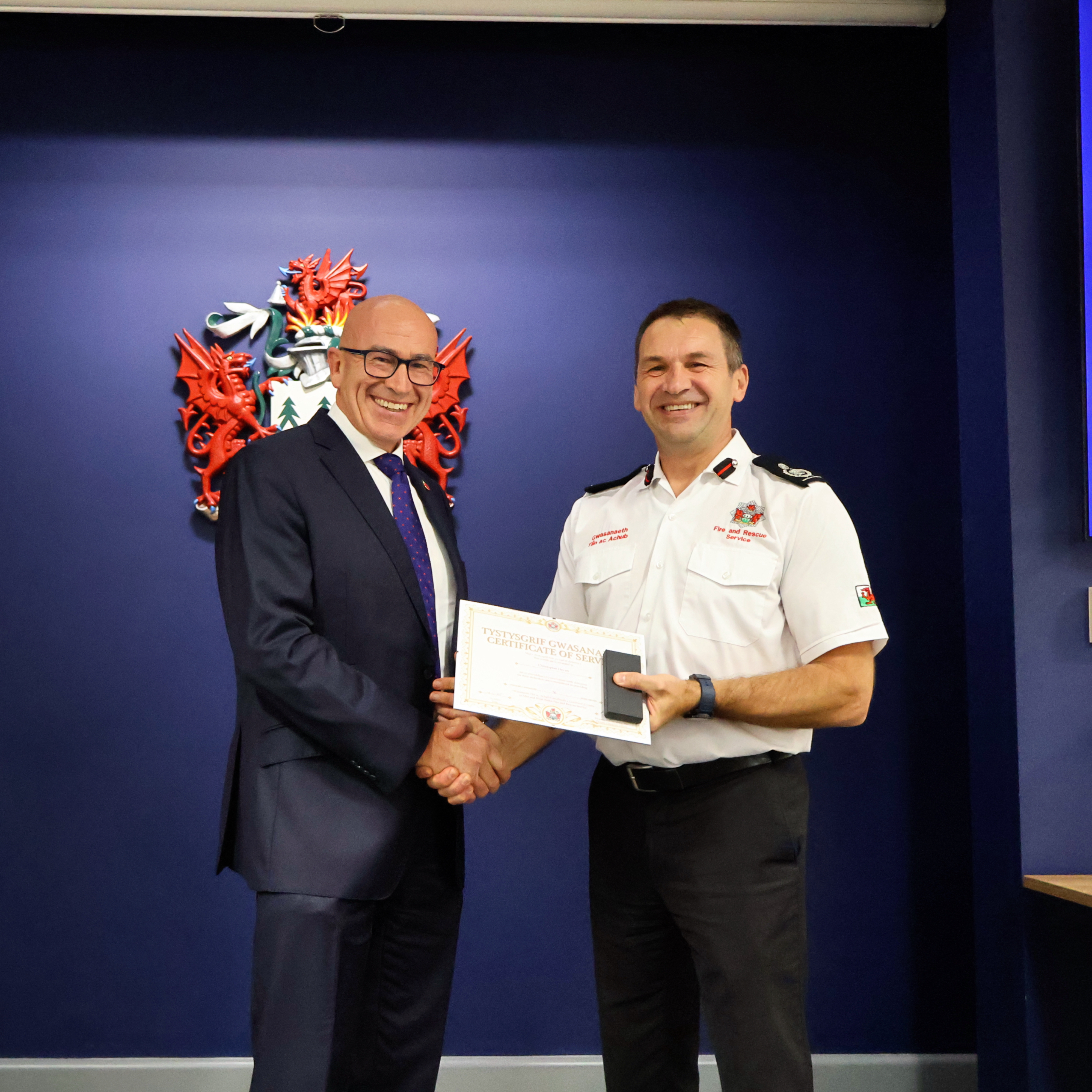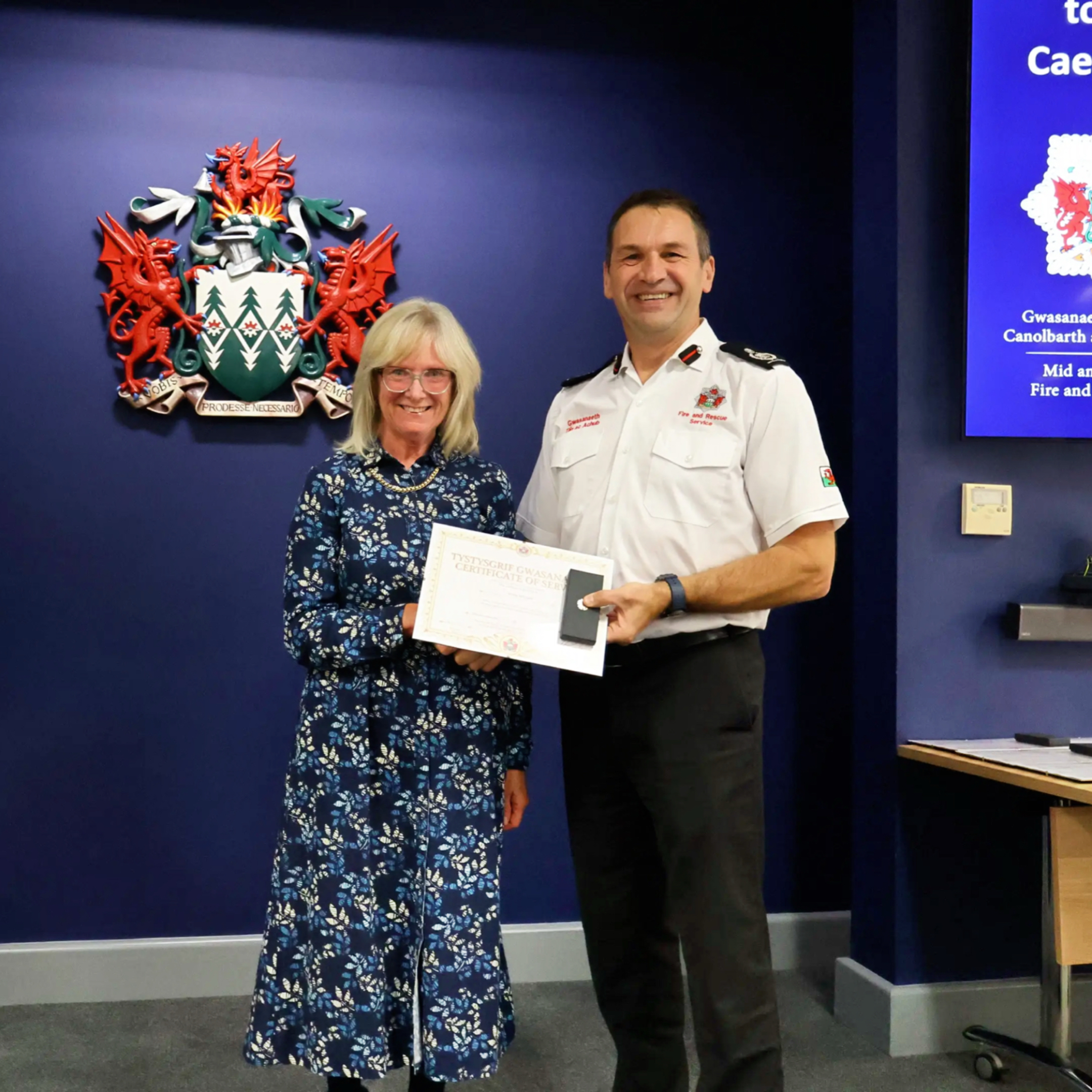 First to receive her award was Watch Manager Yvette Williams from Joint Fire Control, followed by Watch Manager Keith Jenkins from Haverfordwest Fire Station, Firefighter Peter Lewis from Tenby Fire Station, and finally Euros Edwards from Crymych Fire Station.