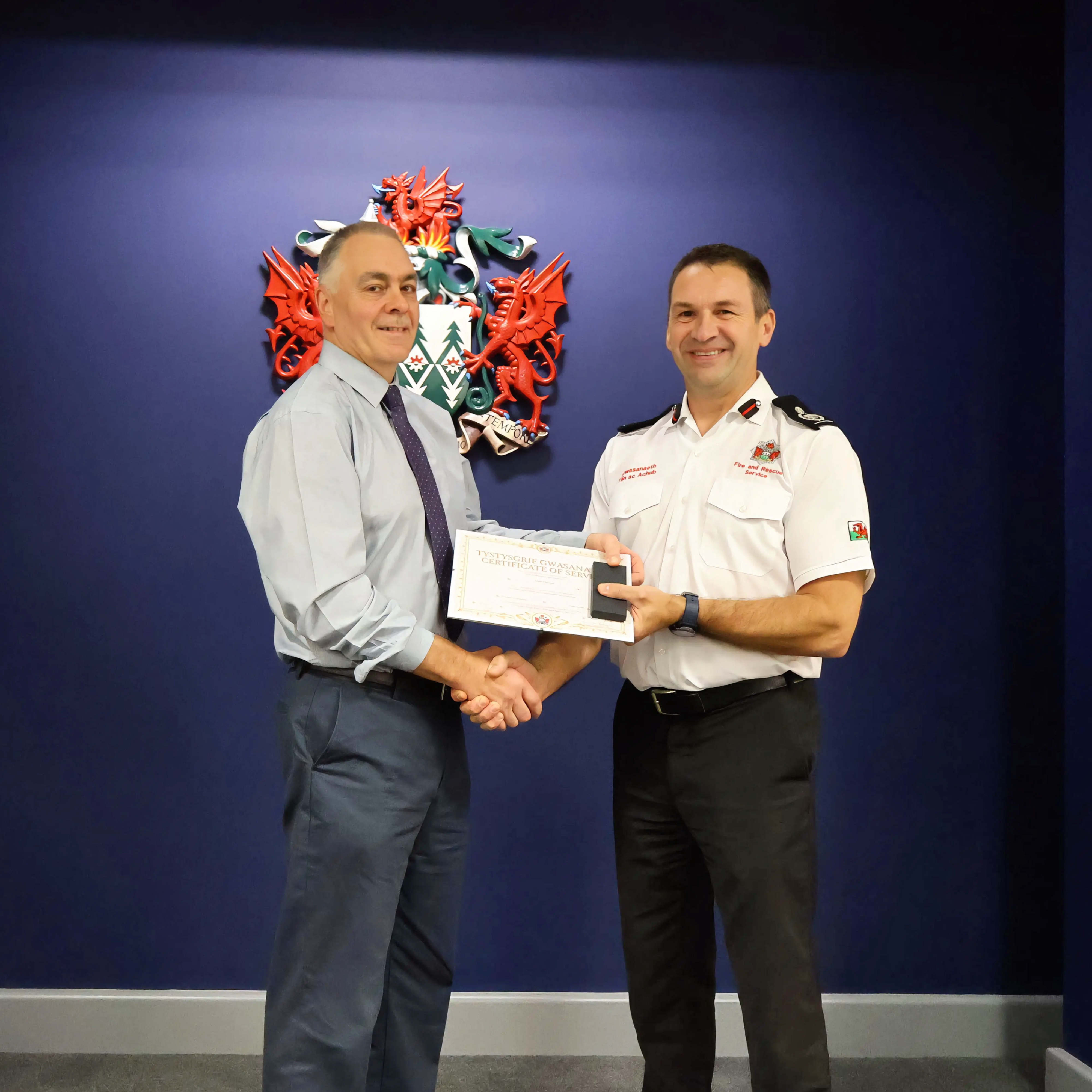 On the evening of Wednesday, 12 November 2025, Mid and West Wales Fire and Rescue Service (MAWWFRS) held its Long Service and Good Conduct Awards Ceremony at Carmarthen Headquarters, recognising Service personnel who have dedicated 30 and 40 years to the organisation.