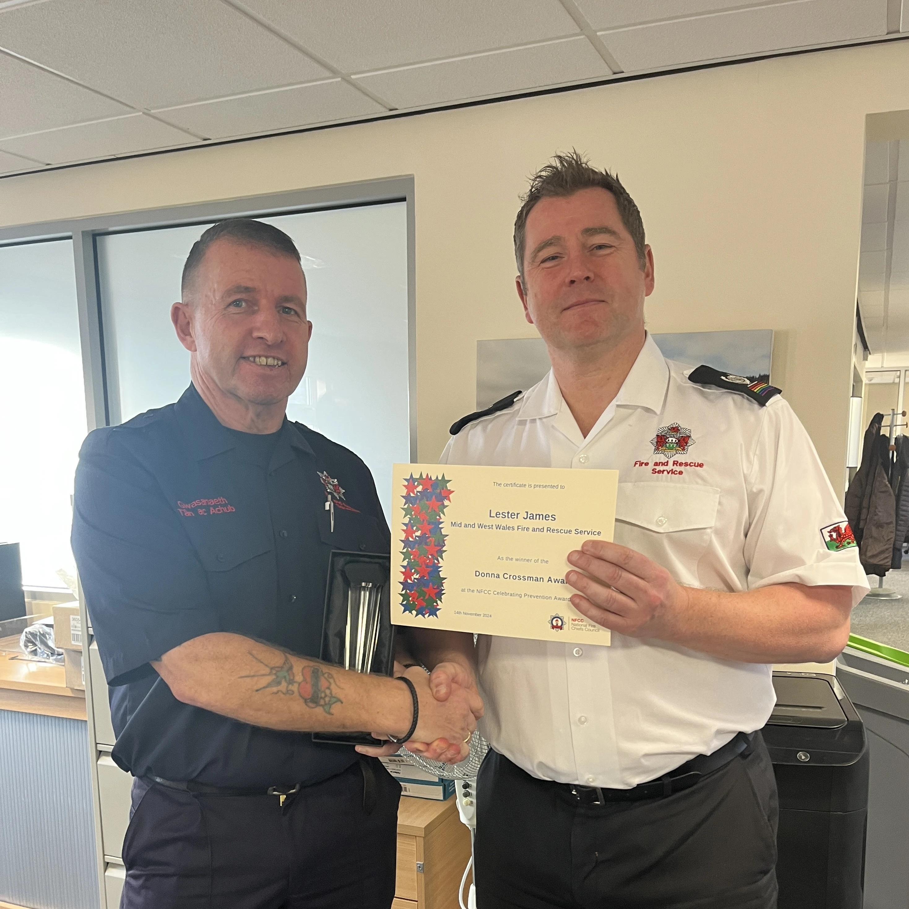 Today we celebrate Lester James who has been presented with the NFCC Donna Crossman Award and Wayne Bream who has been awarded a NFCC Certificate for being a Fire Cadet Volunteer.