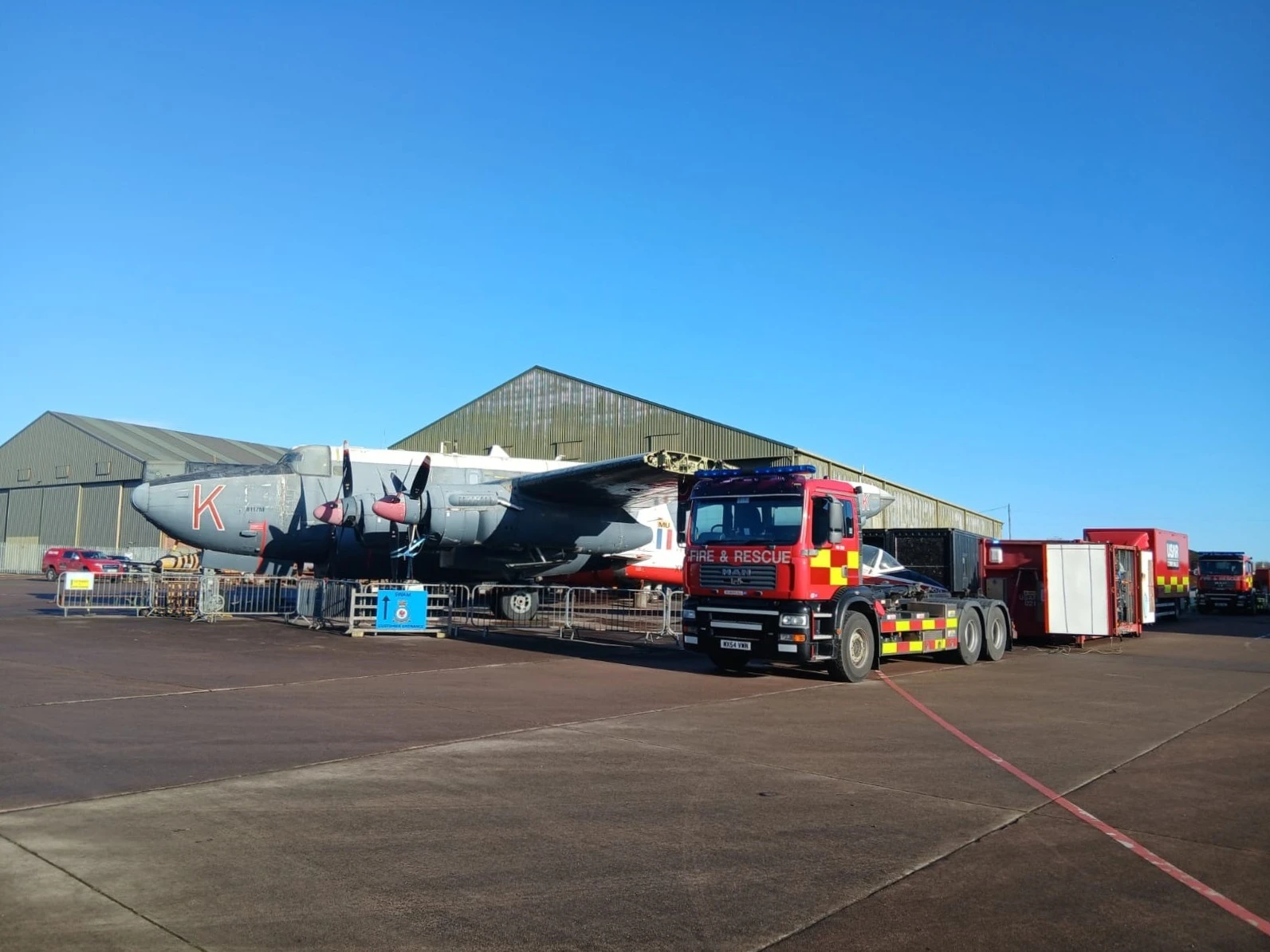 The unique training ground enabled fourteen USAR technicians to practice convoy procedures, initial site setup, and the deployment of Lobo Systems on both hard and soft ground around a range of aircraft - from small training jets such as the Gnat to larger platforms including the RAF Avro Shackleton, retired in 1991 after more than 40 years of service.