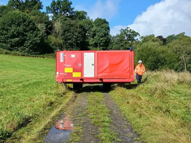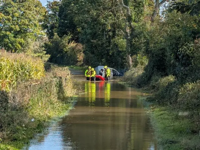 Firefighters from Carmarthen, Haverfordwest, Cardigan and Crymych Fire Stations rescued one casualty from a vehicle stuck in floodwater in Llechryd on Sunday, September 21st.