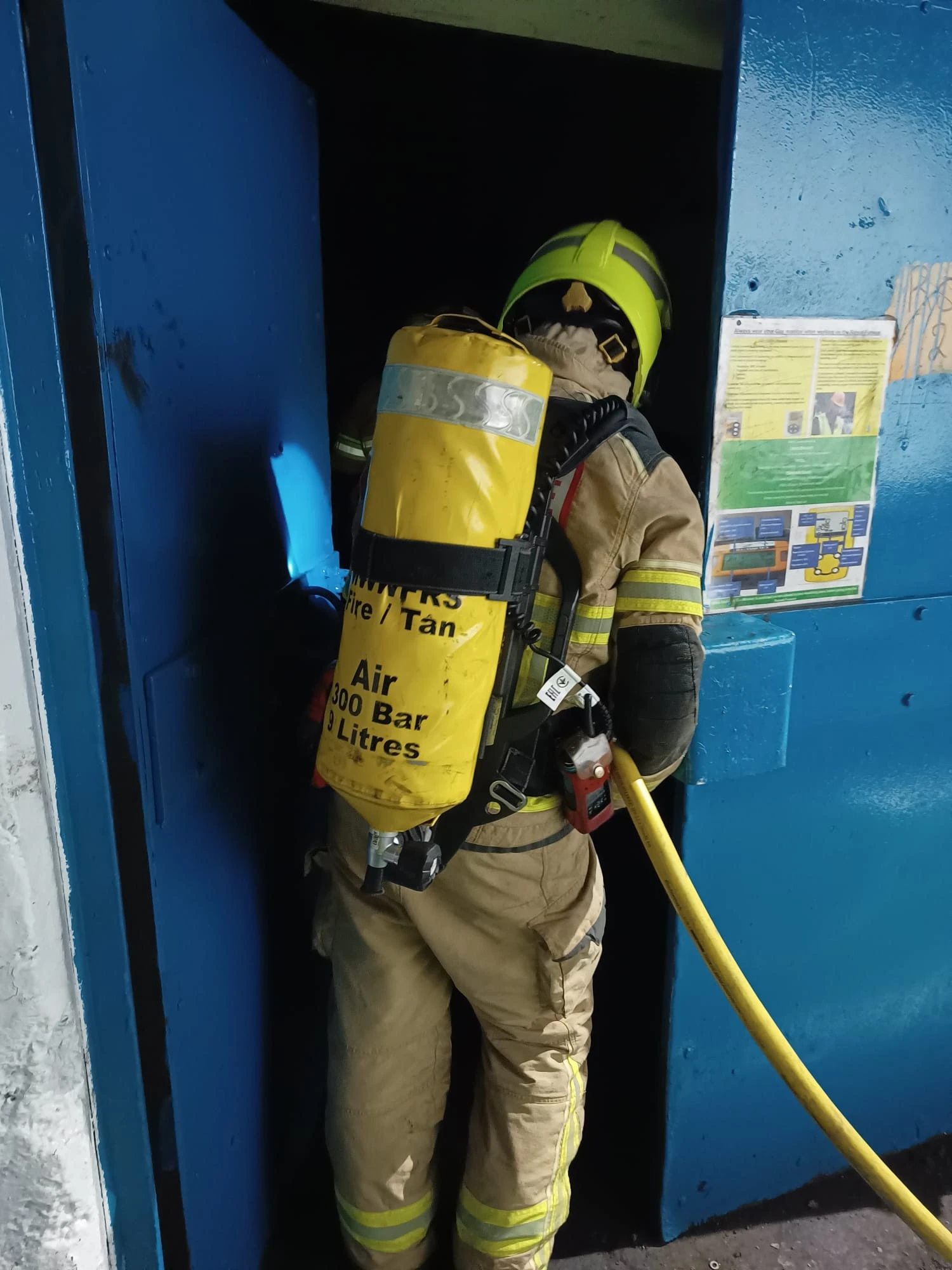 TATA Steel proved to be an ideal location for the exercise, allowing crews to familiarise themselves with the layout, and gain a clearer understanding of the hazards present. Six crew members wearing Breathing Apparatus (BA) successfully entered the basement area and rescued three missing casualties.