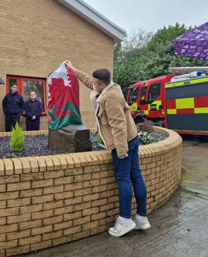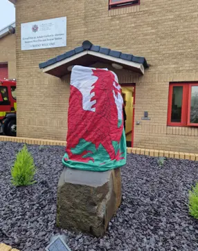 We would like to thank Gwrhyd Specialist Stone Quarry in Pontardawe for their generous donation of the stone. We would also like to express our gratitude to Watch Manager Jon Bates, and Mitch Ford, Firefighter Tom White and the Estates department for their efforts in arranging the memorial. Finally, we would like to thank Station Manager Richie Davies for coordinating the day.