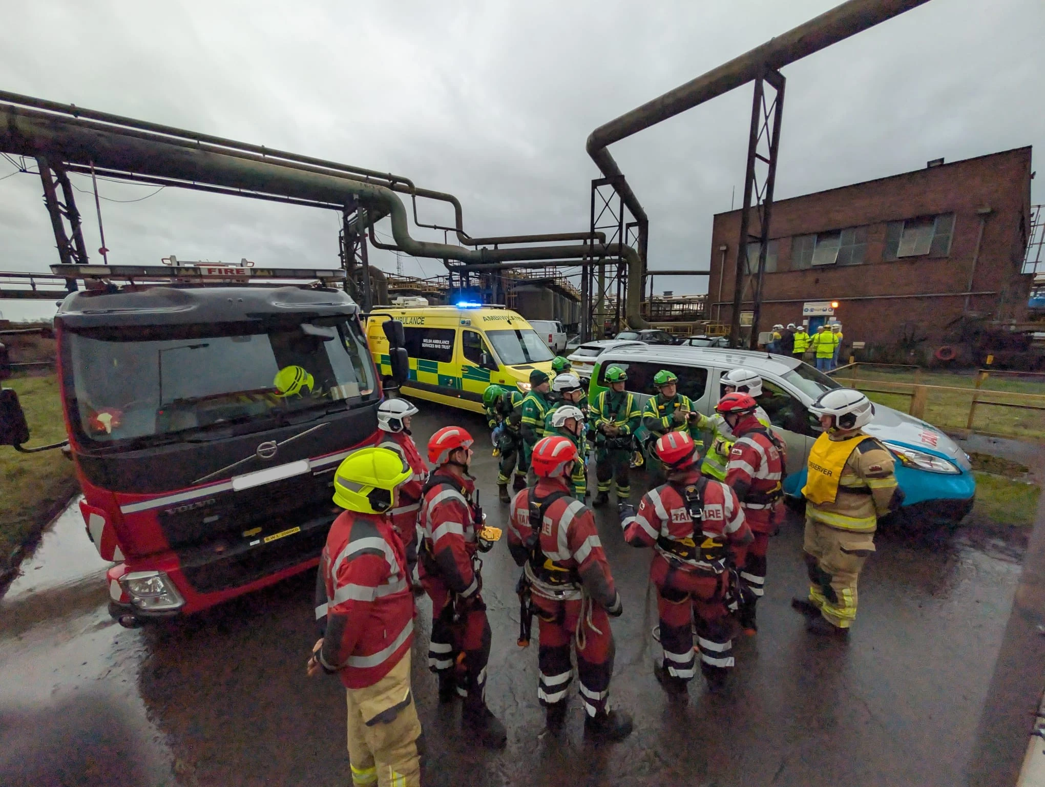 The team worked together to successfully rescue two casualties from a 32‑metre water tower. The incident required a highly technical response, with the Fire Service line‑rescue crews operating alongside the WAST HART team. The scenario also provided TATA Steel with a valuable opportunity to test and refine their emergency protocols.