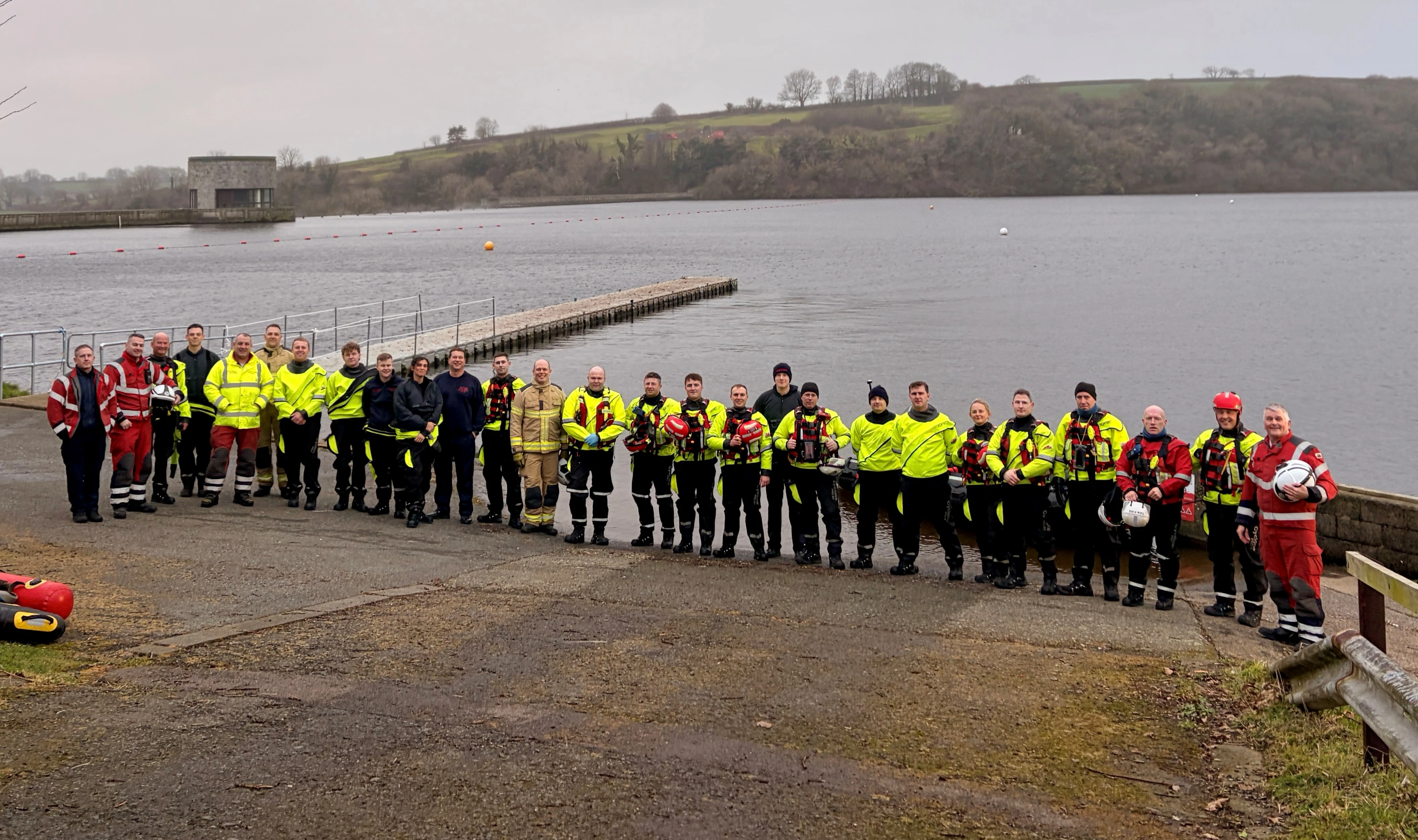 Boat crews navigated the lake to search the water and retrieve casualties, while wading teams were deployed to areas inaccessible by boat, combing the shoreline and the shallows.  Throughout the exercise, Firefighters practised essential skills including coordinated search techniques, casualty handling and effective communication with the Incident Commander and fellow crew members.